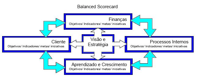 Cada uma dessas abordagens tem seus próprios objetivos, suas metas, iniciativas e seus indicadores, e devem estar em concordância com a visão, a missão e os objetivos estratégicos da empresa. A imagem abaixo ilustra a abordagem do cenário balanceado de KAPLAN & NORTON: