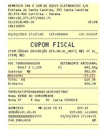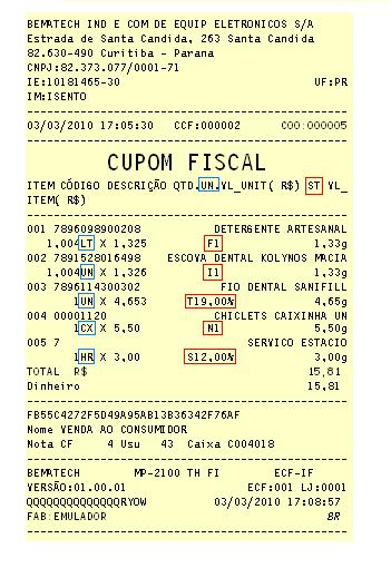 | − | *f) o valor total do Cupom Fiscal. | + | *'''f)''' o valor total do Cupom Fiscal. |