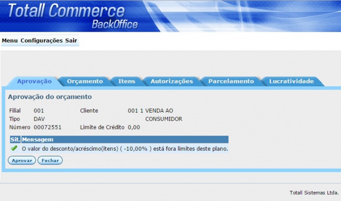 A Autorização Remota tem como objetivo facilitar ao(s) supervisor(es) a verificação de quais DAV's ou Pré-vendas aguardam autorização sem a necessidade entrar no Totall Commerce Order ou de estarem in loco. A aprovação remota deste DAV/Pré-Venda poderá ser efetuada através do aplicativo Totall Commerce WEB, que é acessado através de um link no browser (Internet Explorer, Chrome, Firefox, etc). ConfiguraçõesTotall Backoffice Em Principal >> Usuários configure: 1. O usuário supervisor/administrador deve ter a permissão: 025 - Supervisionar Pré-venda. 2. Pode-se informar o % de desconto máximo permitido ao supervisor/administrador aprovar em um DAV/Pré-venda. O supervisor que não tiver esse campo preenchido entende-se que esse não tem limite de permissão.