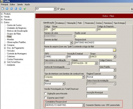 Em Parceiros >> Cadastro informe o registro do contabilista como